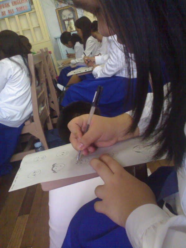 Anyway, today, we didn't really have proper classes BECAUSE we had a first Friday mass at the church today. I swear, I was sleepy and it was hard to stay awake. But enough of that, like I even care about that. So, we had our club meeting again, which only happens the first Friday for every month. Again, I'm arts club, and we had to draw different facial expressions. I was surprised how our moderator commented on my work, which I thought she would never do. What do I have to expect? I drew fifteen heads (as required) with different facial expressions with mohawk and three earrings in each ear? Hah, I'm that bad ass. :)
